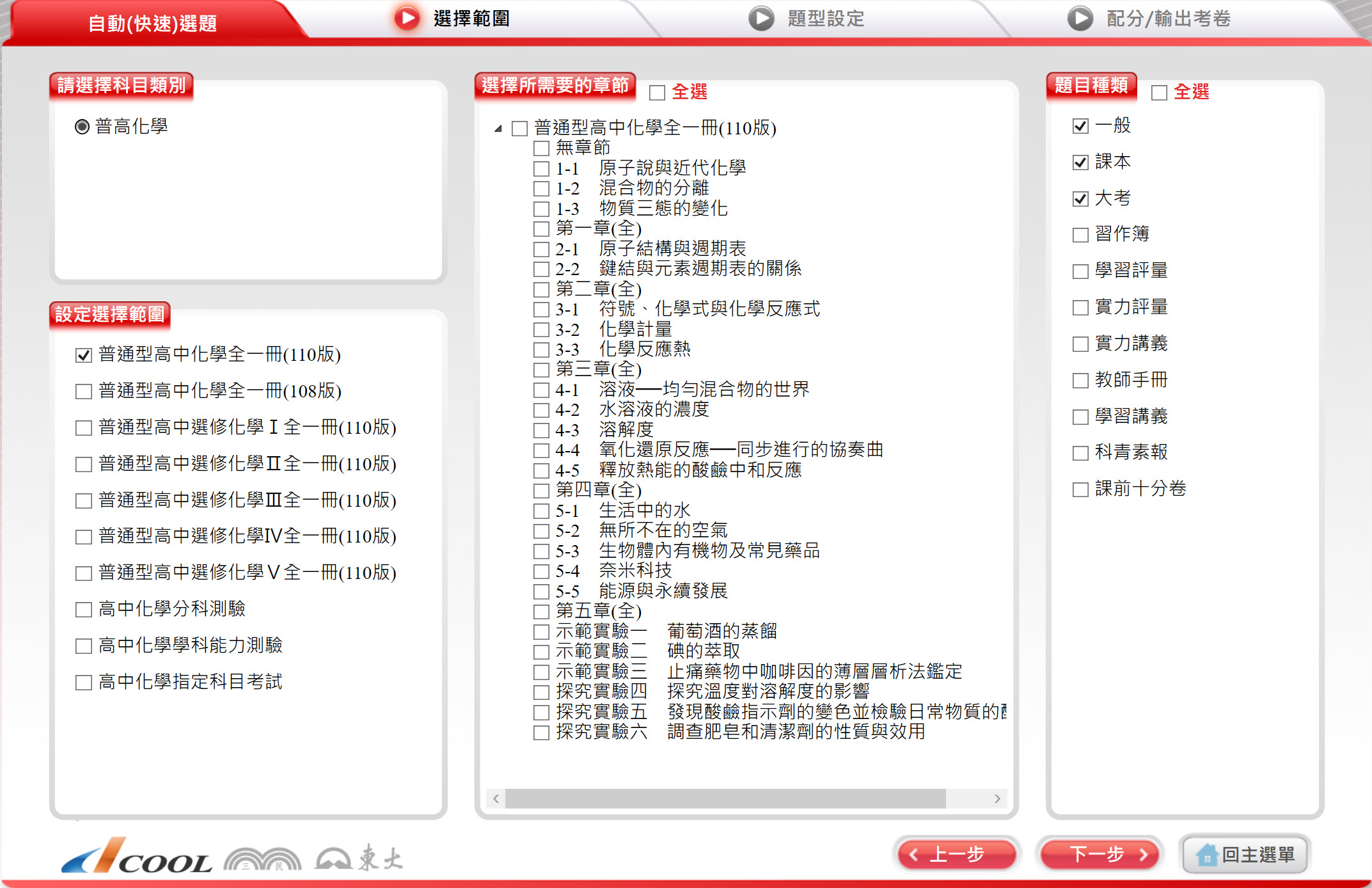 112學年上學期 高中命題光碟 三民版 化學科(全、選修I、選修II、選修III、選修IV、選修V)(108課綱) 題庫光碟