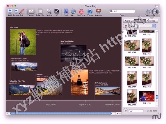 添加表格以及帶有動畫效果的 3D 圖表。使用媒體瀏覽器,你可以很方便地將 iPhoto 或 Aperture