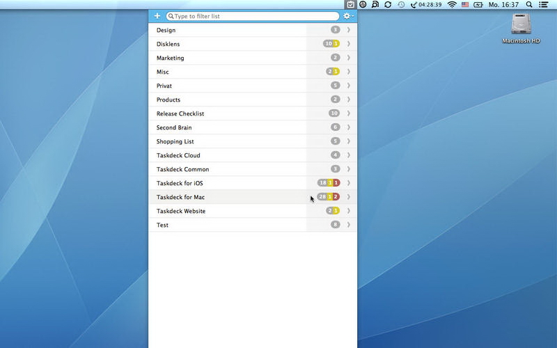 Taskdeck for Mac是快速和容易的任務和待辦事項管理,它位於你的mac功能表欄