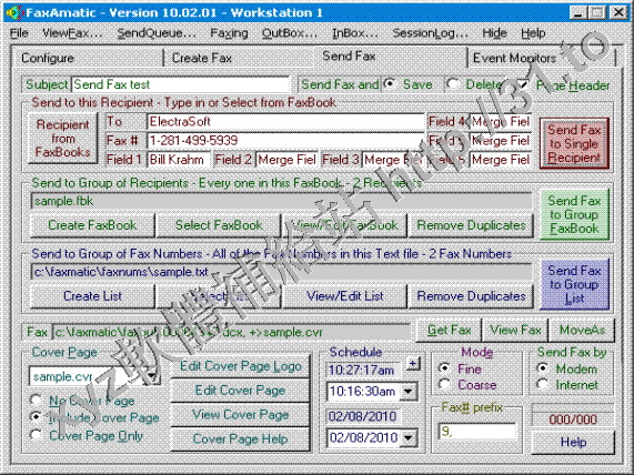 並可以創建定制的封面、定制傳真面的大小、瀏覽傳真、控制 Modem 的聲音、自動定時