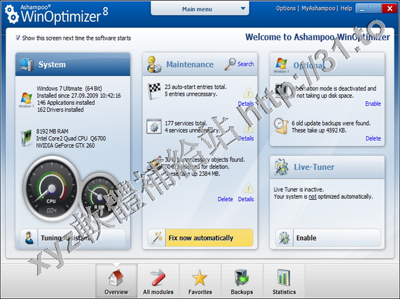 • Ashampoo WinOptimizer 8.v8.01 英文正式版(功能全面的Windows系統優化軟體)