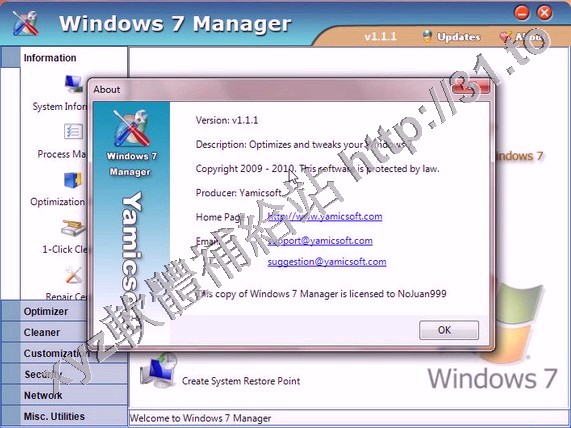 Yamicsoft Windows 7 Manager v2.1.9 英文正式版(Widnows7 總管是優化和設置軟體)
